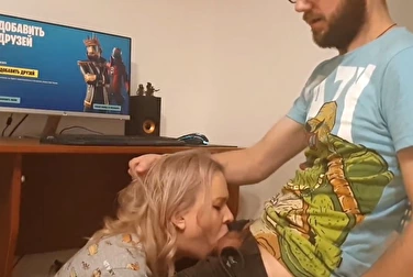 Подруга отвлекла от игры — наказал её, кончив глубоко в горло